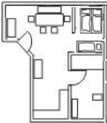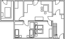 Die Wohnung 3 verfügt über einen kombinierten Wohn-/Schlafraum mit einem Doppelbett (120 cm x 200 cm) und einem Stockbett (zweimal 90 cm x 200cm).